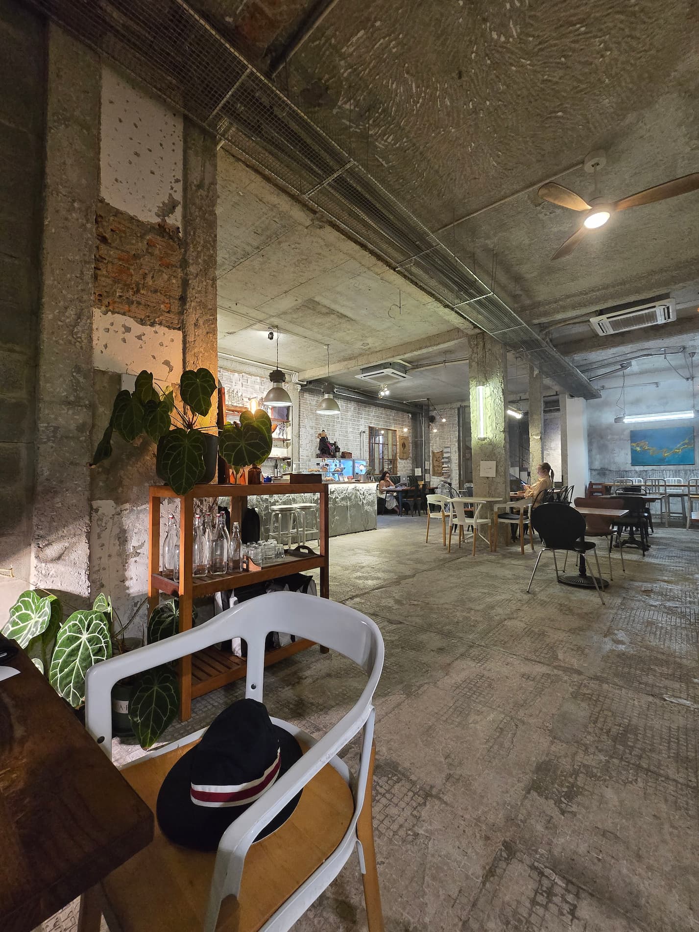 유리창 너머로는 네온사인이 번지고, 오토바이 소리와 사람들의 웃음이 뒤섞인 밤 거리가 흘러갔다. 그 번잡함 속에서도 이 카페 안만은 이상하게 고요했다. 거친 콘크리트 천장, 드러난 벽돌 사이에 놓인 짙푸른 화분들. 누군가 일부러 남겨둔 것 같은 시간의 흔적들.